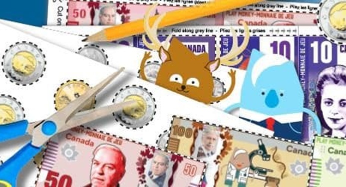 Ressource proposant des billets et pièces canadiennes factices à imprimer afin de permettre...