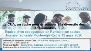 Animation : Alexandra Simard-Côté, conseillère pédagogique, CSS de la Jonquière, Équipe-choc pédagogique – Participation sociale