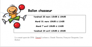 • Vendredi 3 avril : de 12h 35 à 13h 35